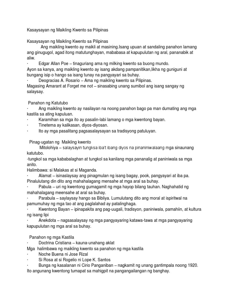 Kasaysayan ng maikling kwento 1. Gayunpaman nararapat maging alisto ang sinuman sa pagtanggap ng mga salaysay ng kababalaghan. Dahil pagbabarena tulong ang maibibigay nito sa akin para sa darating na panahon na ating haharapin upang mayro.