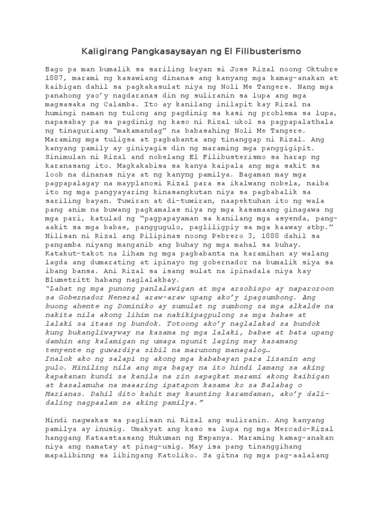 KALIGIRANG KASAYSAYAN NG EL FILIBUSTERISMO FILIPINO 10 2. Scribd is the worlds largest social reading and publishing site. Ang El Filibusterismo ang isa sa pinaka-tanyag na nobela na gawang Pilipino.